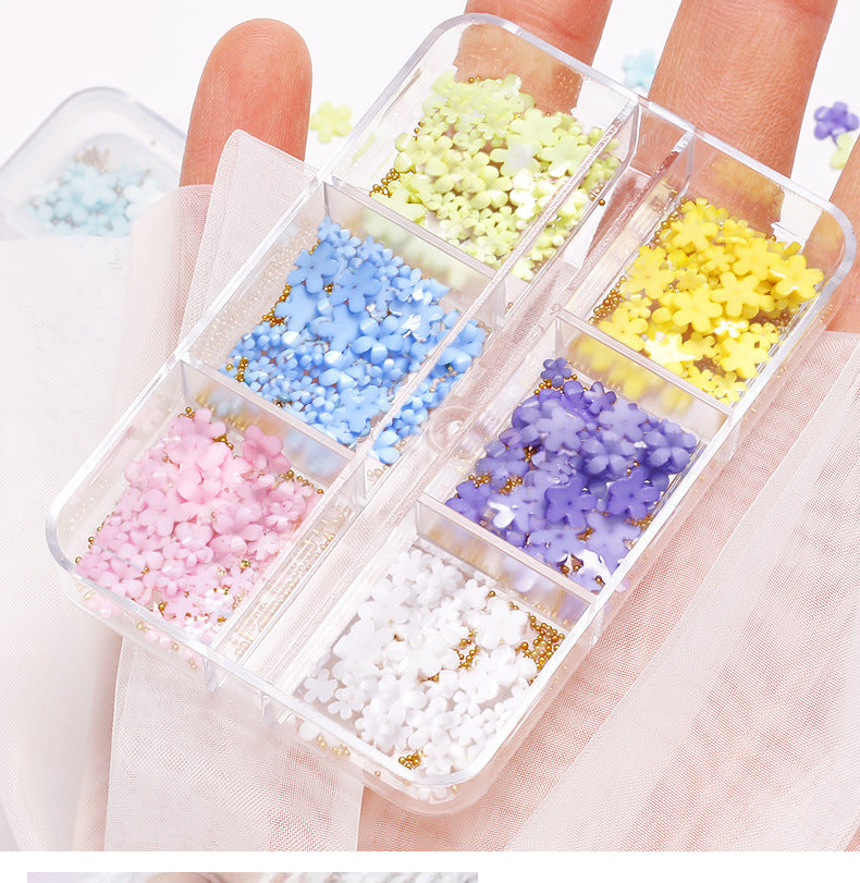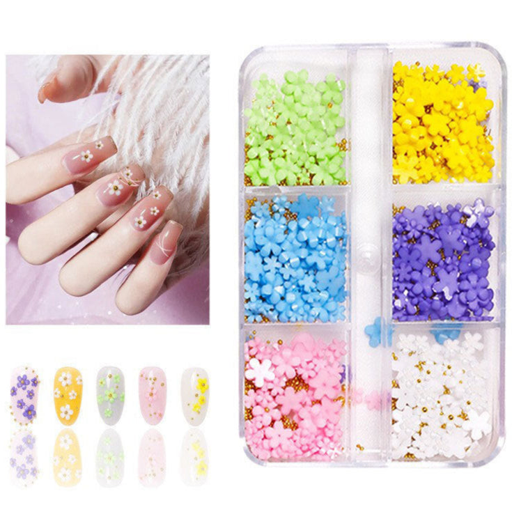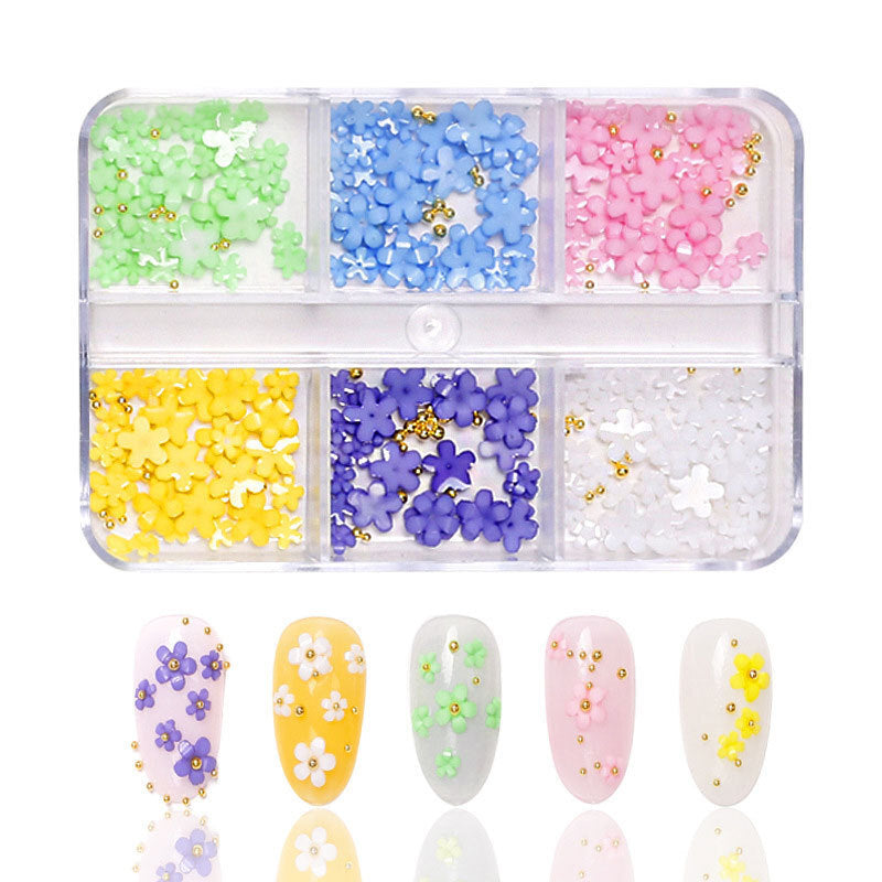 Nail Decorations - 3D Flowers with Steel Balls - 6 Colours