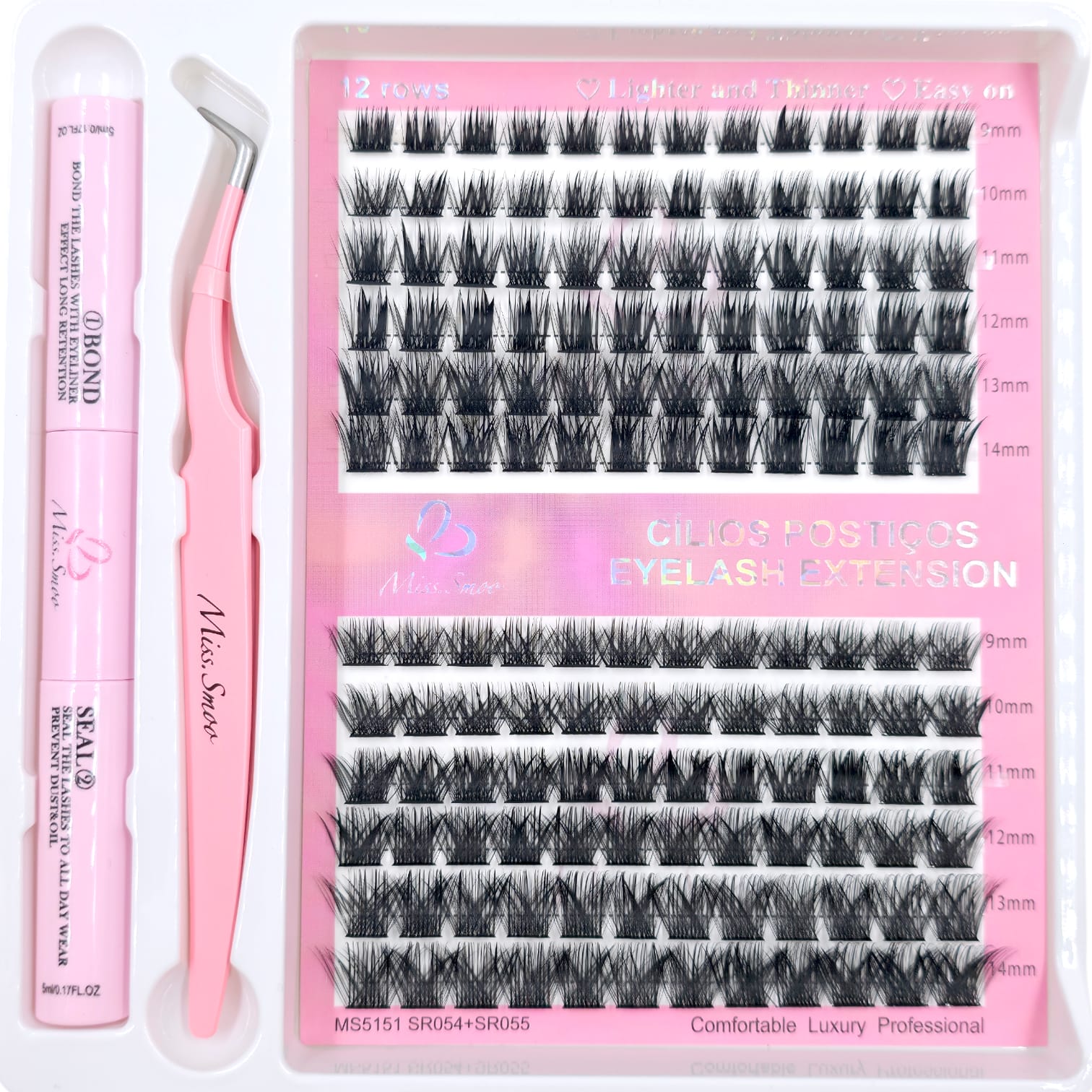 Eyelash Extension - SR054 + SR055 - 0.07-D - 9-14MIX - Set