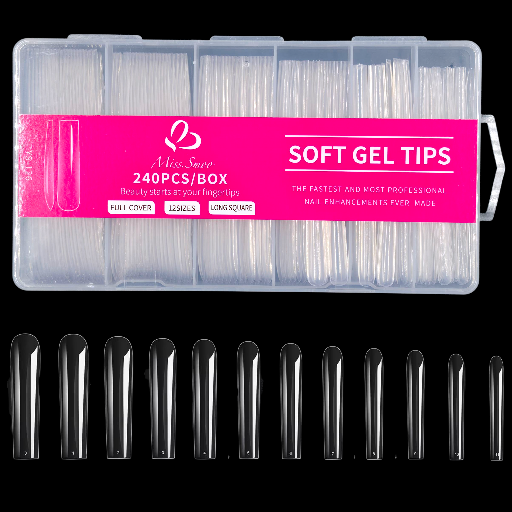 Square - 3XL - Full Cover - Soft Gel Nail Tips - 240pcs - Clear