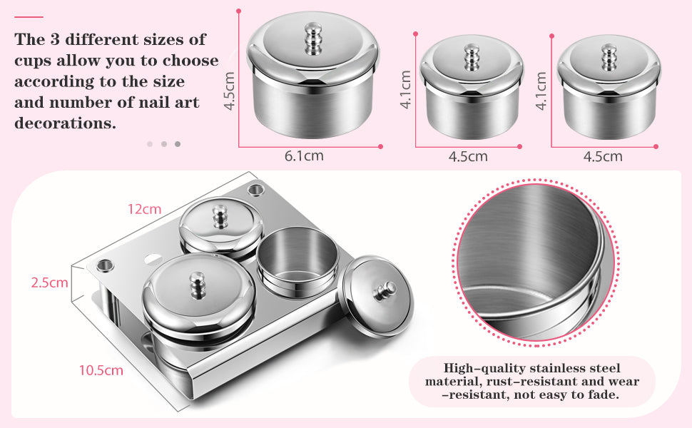 - Versatile usages: these stainless steel nail powder holder containers with lids are suitable for both professional nail salon or home use, necessary tools for nail artists, beginner, learner and more
