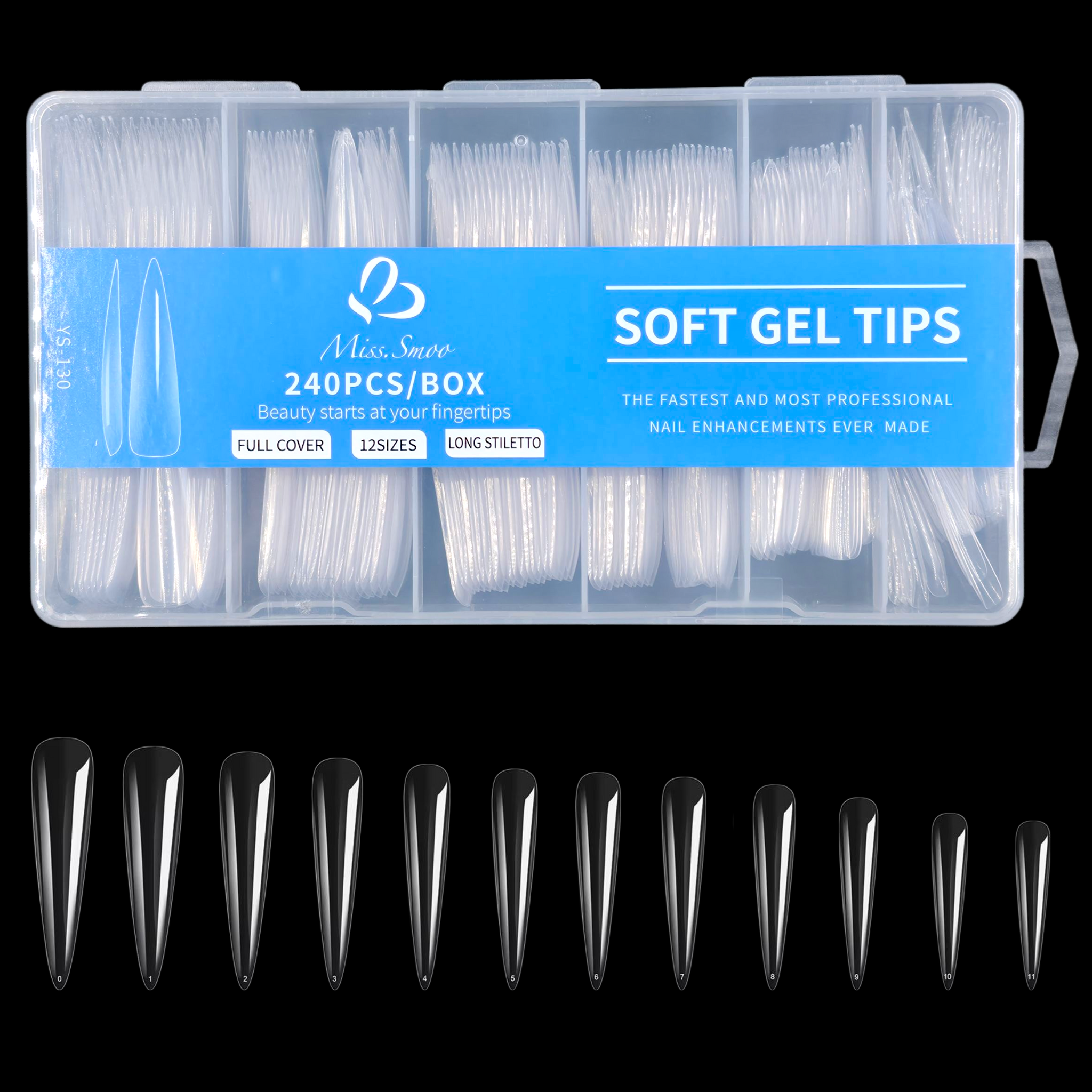 Stiletto - 3XL - Full Cover - Soft Gel Nail Tips - 240pcs - Clear